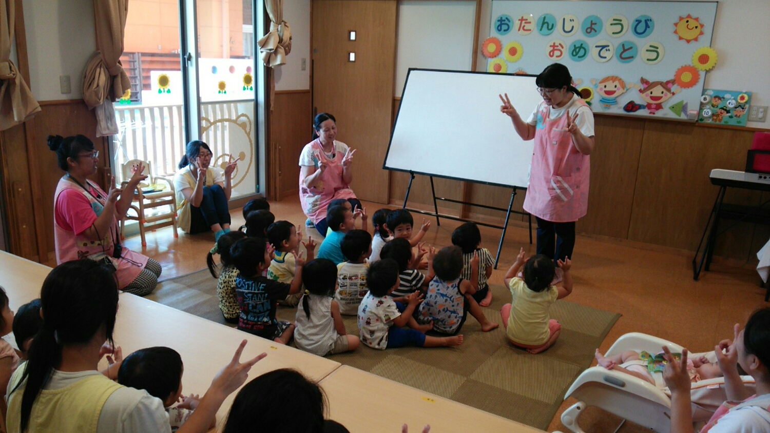 3年前に野ばら幼稚園の遊戯室のステージで歌ってくださったんですよ