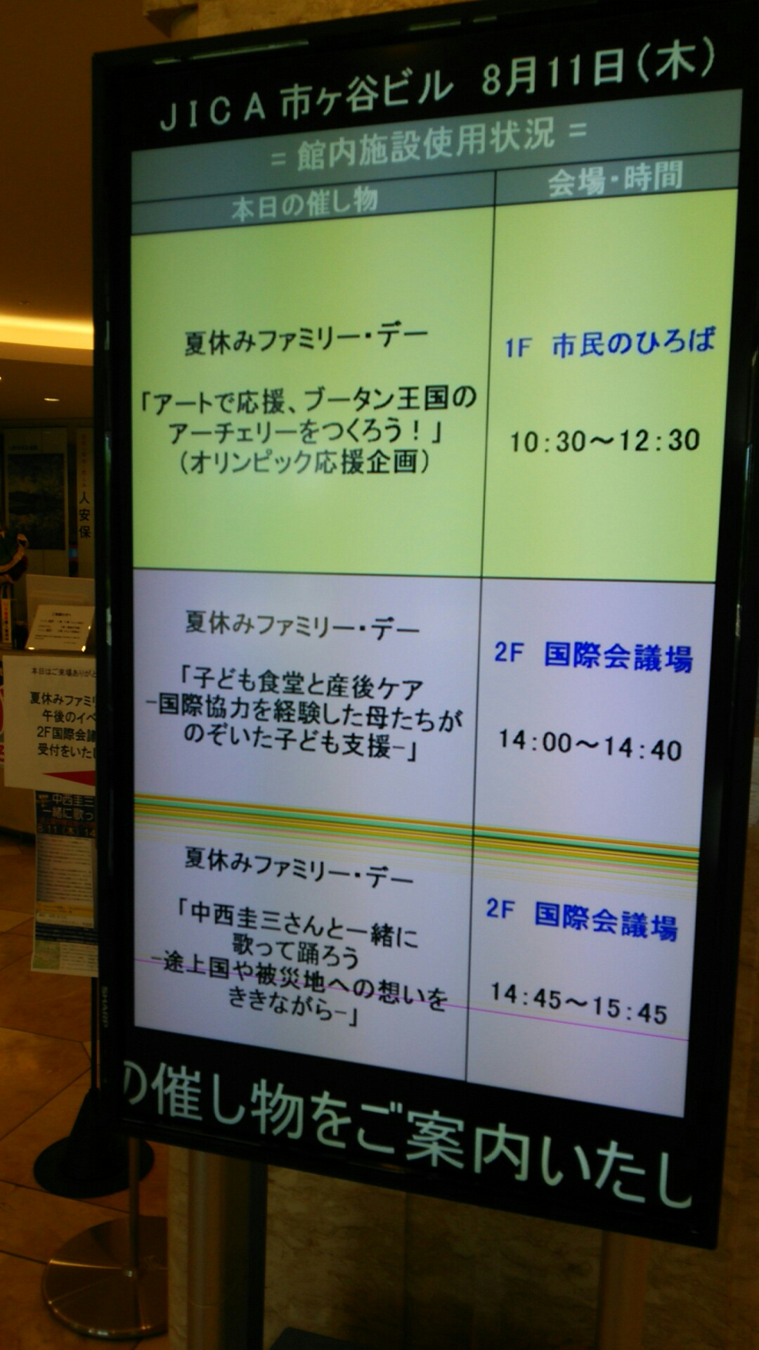 今日は東京の市ヶ谷、JICAさん(国際海外青年協力隊)の地球ひろばの夏休みファミリー・デースペシャルとして企画された「中西圭三さんと一緒に歌おう踊ろう」のイベントに参加して来ました